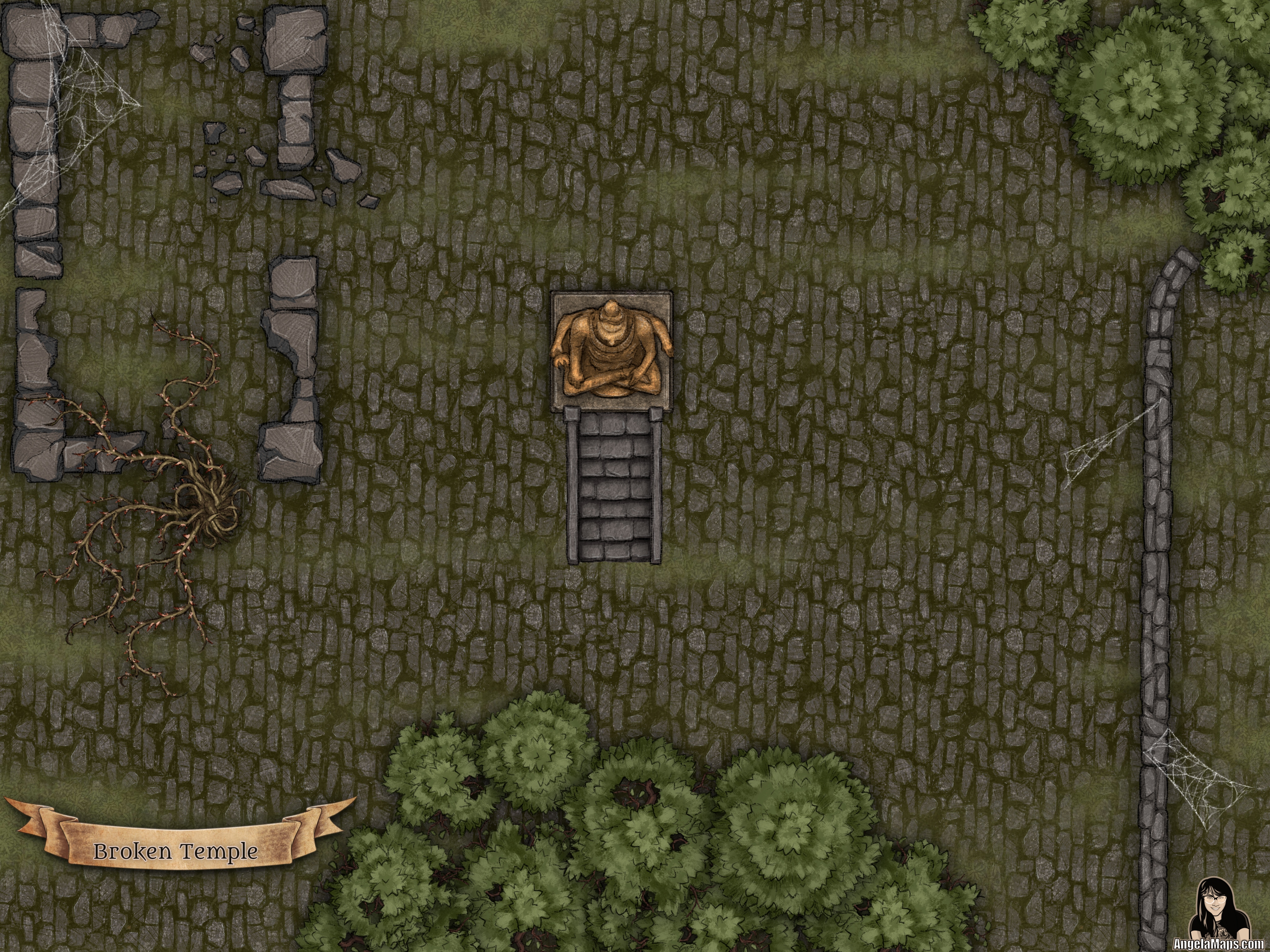 Broken temple battle map encounter for D&D