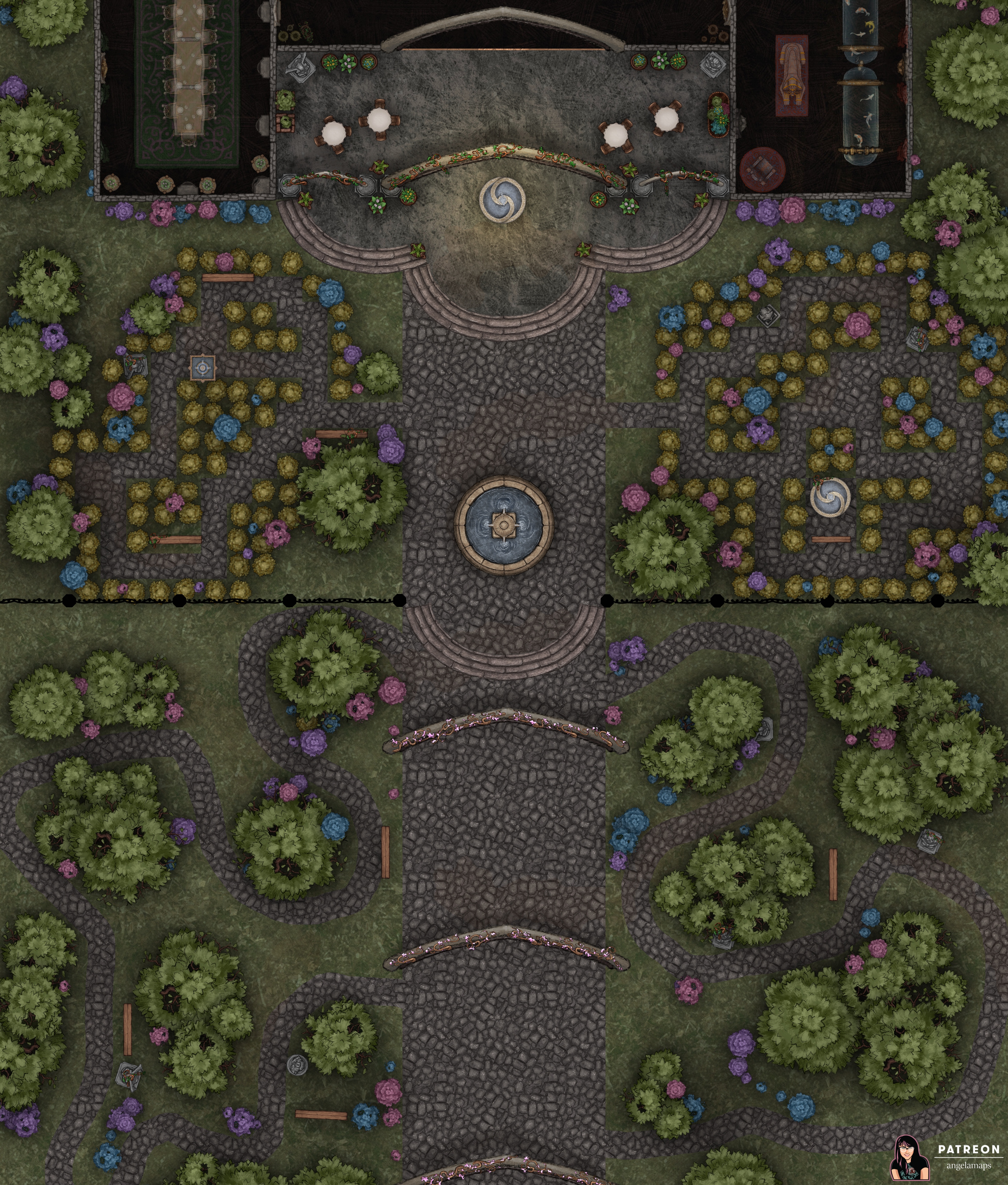 This one took me a very long time 🙂 I have split it up into several maps so you can download in whatever way works best for you. I have the first floor and the grounds together as one big map the way I created it, but also as “The Manor” and “The Grounds” as separate maps. And both “The Upstairs” and “The Cellar” as separate maps.