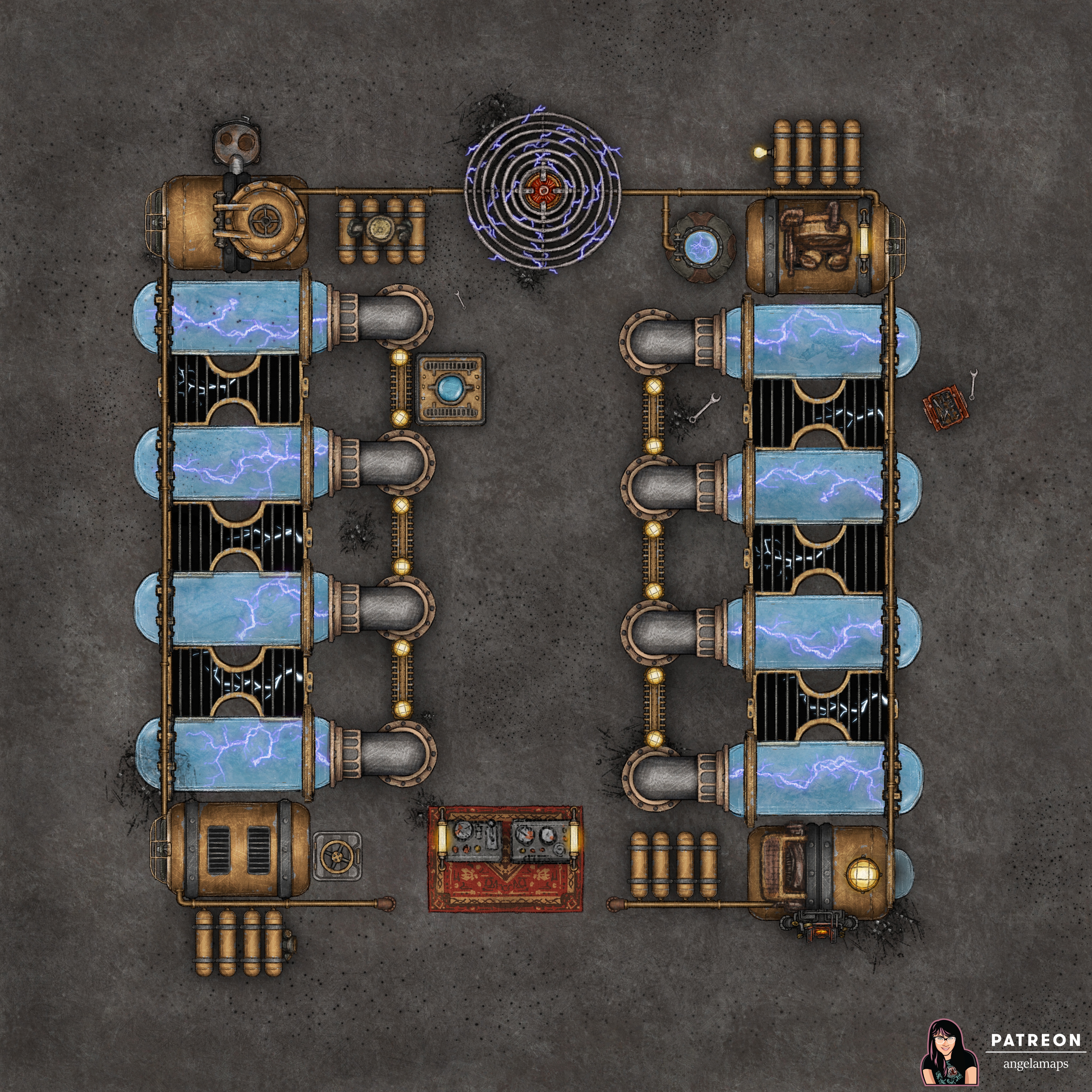 I created this map as a power plant, but it might also work as some sort of crazy scientist lab or some other sci-fi setting. Plenty of opportunities to zap your players on this one 🙂 If you use the map, leave a comment and let me know how you used it in your game!