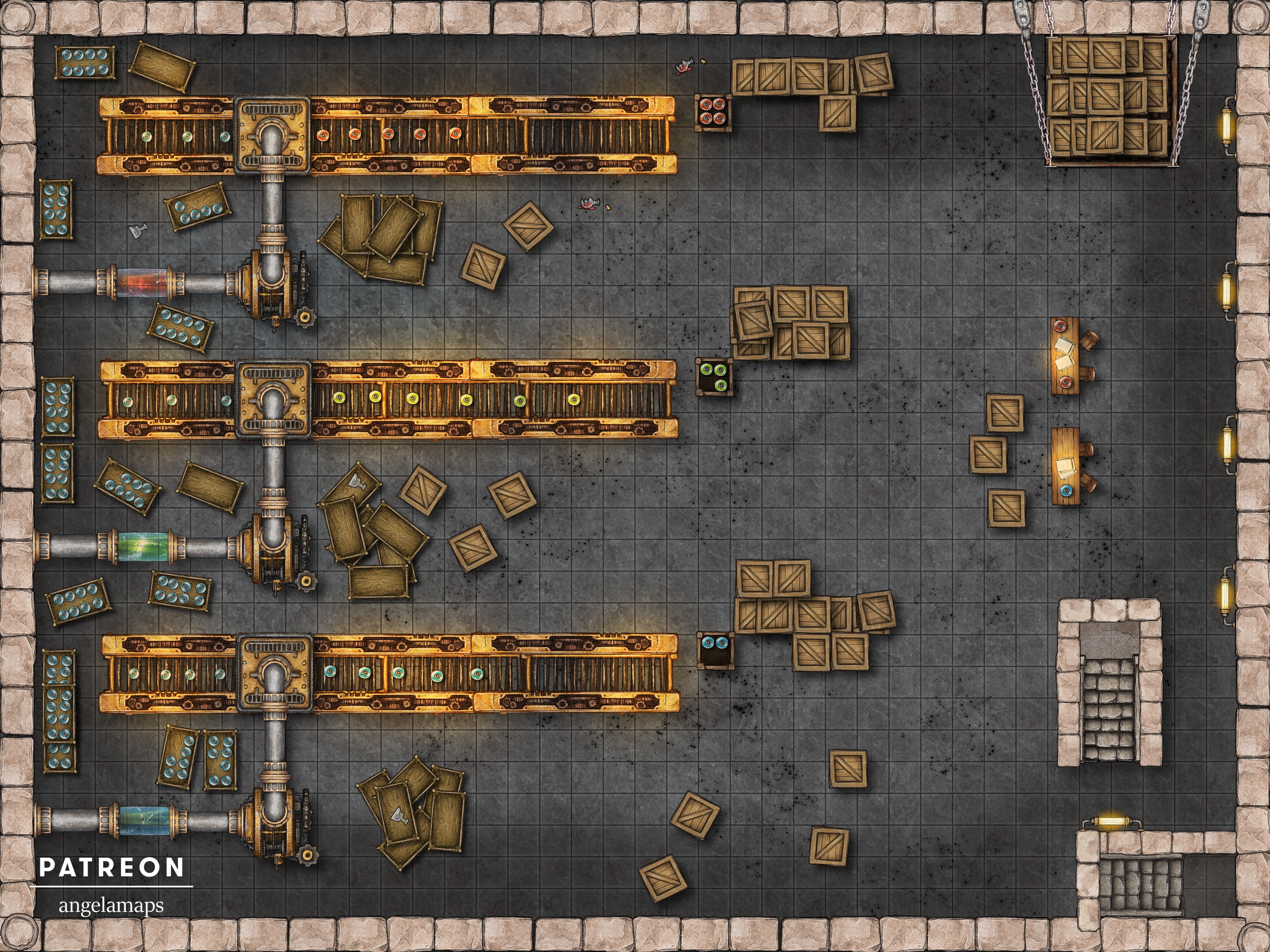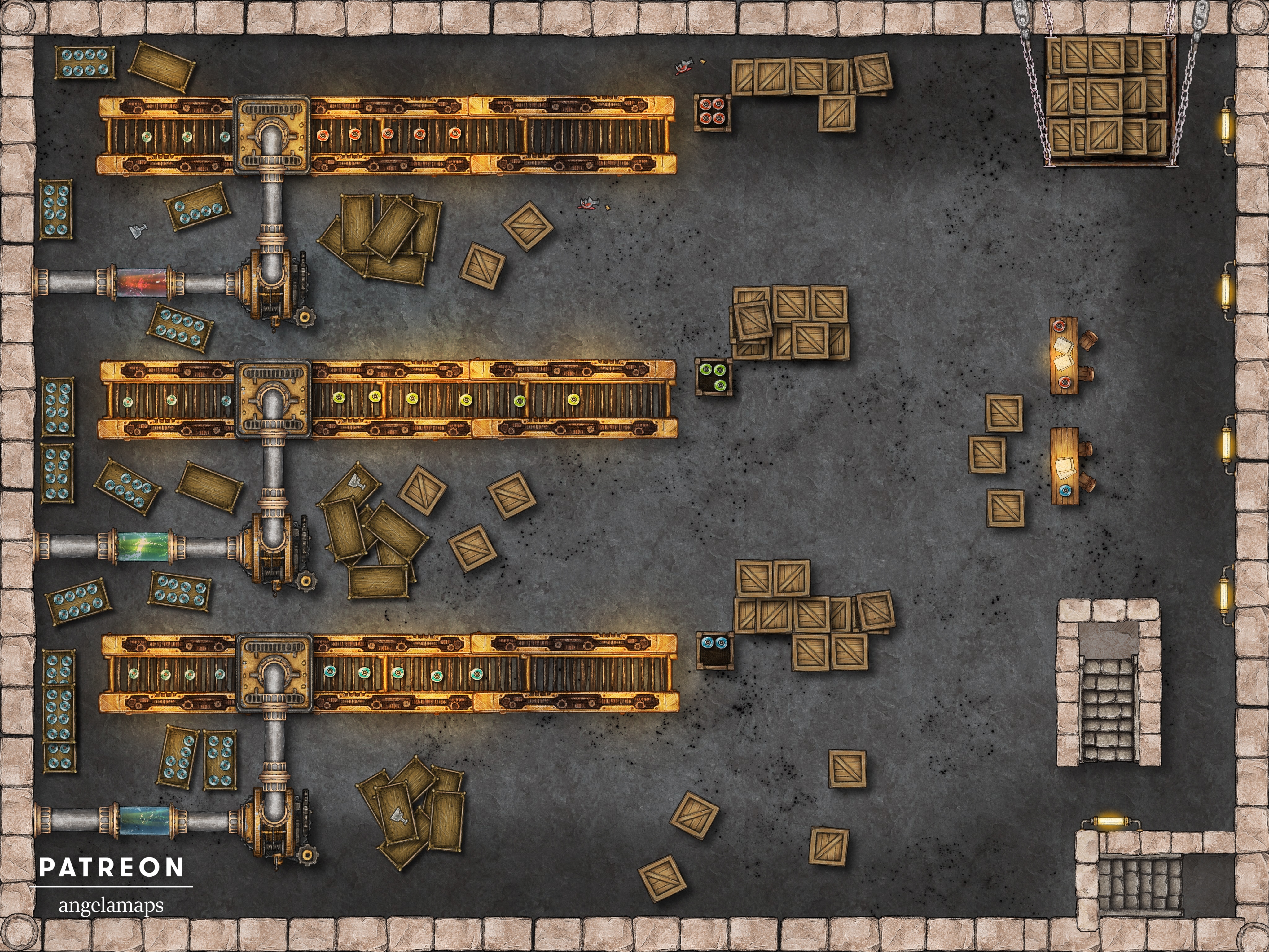 Lower level 1 is the factory line where all of the potions are bottled for sale.