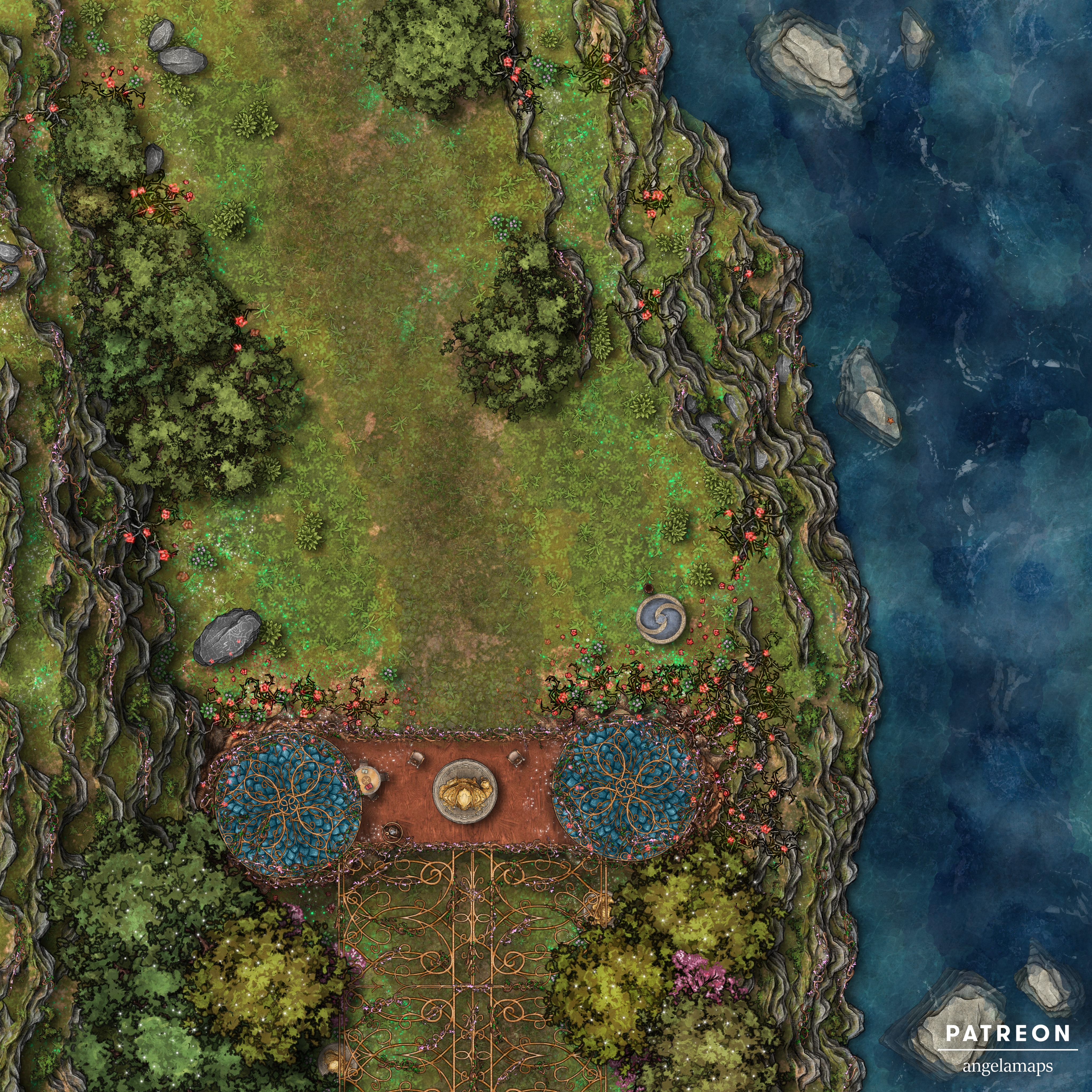 This map and all the free maps on this website are paid for by my Patrons. Join them in supporting me for only €3. On my Patreon you can access base maps, alternate maps, animated maps, FGU setup maps and FVTT setup maps. Maps are for non-commercial use only.