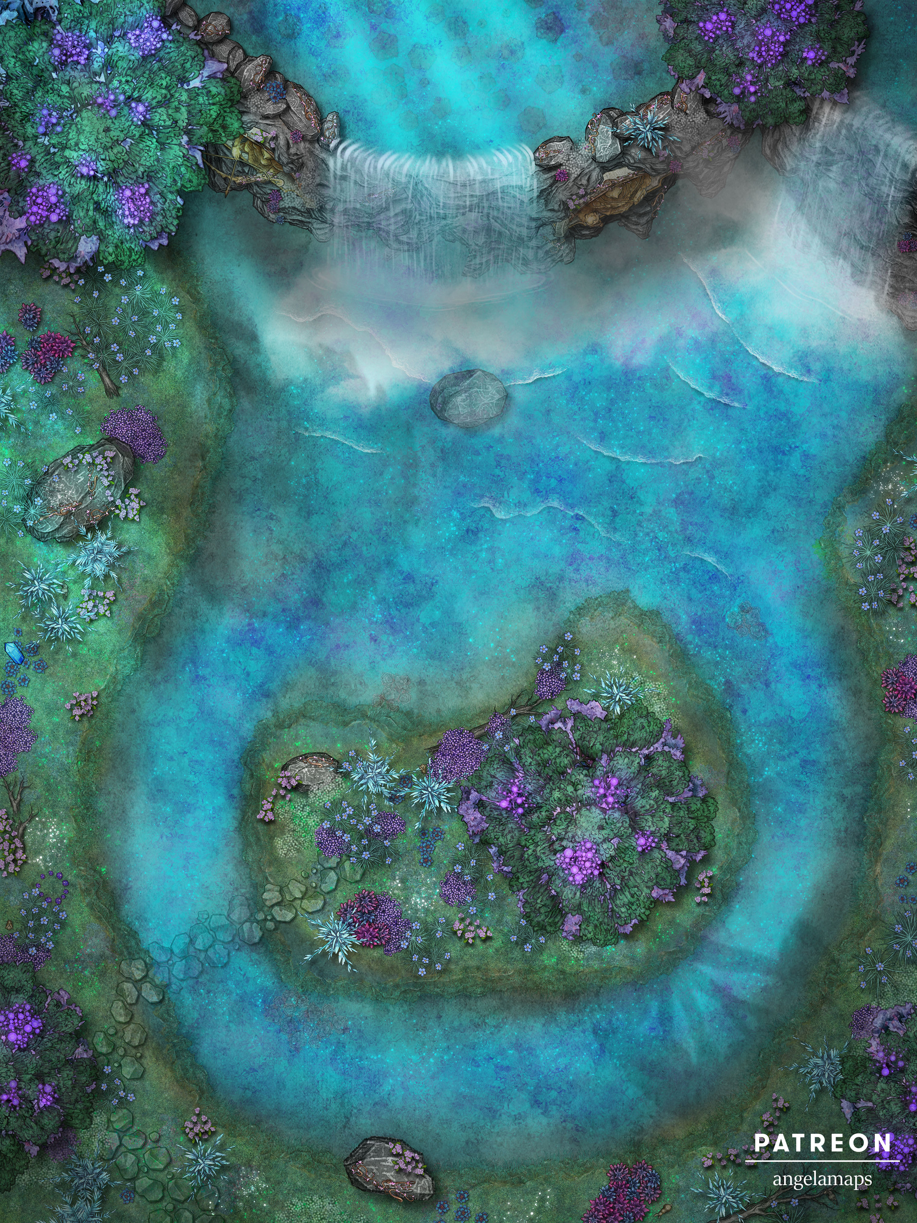On the shores of this gentle lake, serenaded by the rush of the waterfalls that feed it clear, crystalline water, the elves have lived for eons. Or perhaps this is a place of shelter, one that they’ve only found recently after untold hardships drove them from their ancestral homes? Perhaps a touch of the fae lingers here, and more than mere visual enchantment takes place amidst its gloriously colourful surroundings. This fully animated map and its two variants, providing sun-soaked and twilit alternatives of this welcoming lake, are now available to dazzle your players with a locale of outstanding natural beauty!